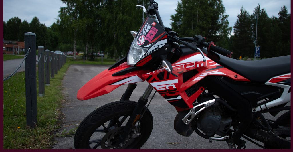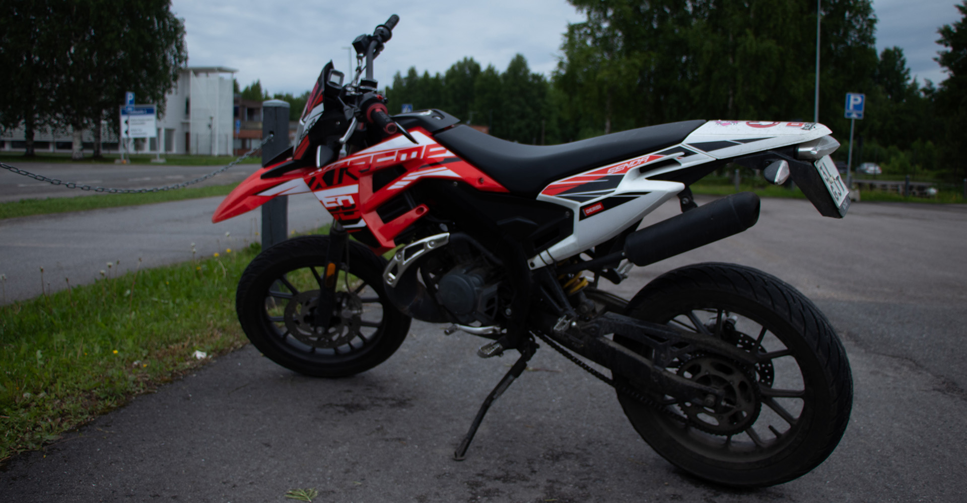 Kuvasin ja suunnittelin näyttötyökseni esittelyvideon mopostani. Punamustalla katesarjalla varustettu kaksipyöräinen moponi Derbi Senda, on erittäin näppärä kulkupeli. Hyvin sutjakka ja vauhdikas niin ala- kuin ylämäessäkin.