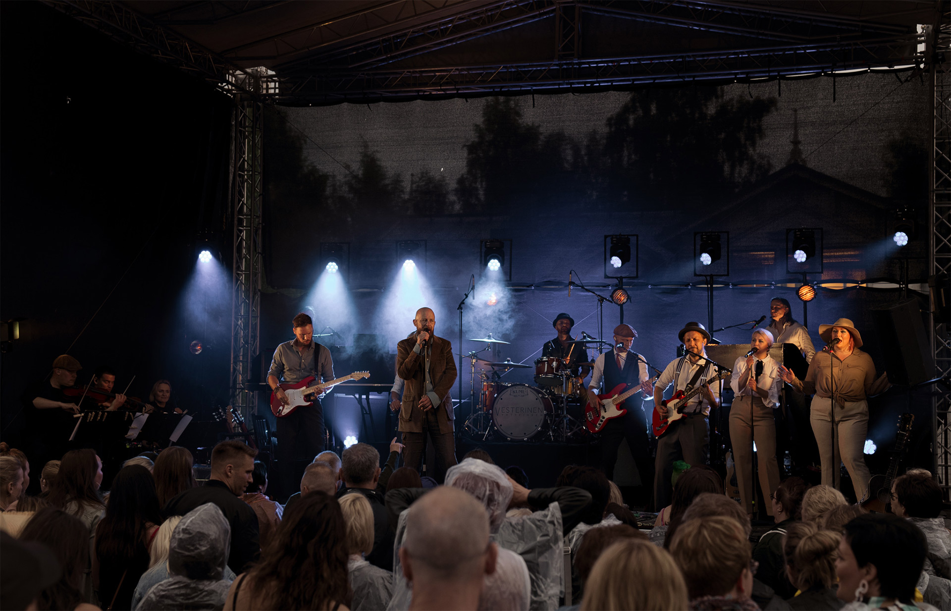 Mitä on meneillään? Bändi kantaa tavaroitaan lavalle ja soundcheck on alkamaisillaan.