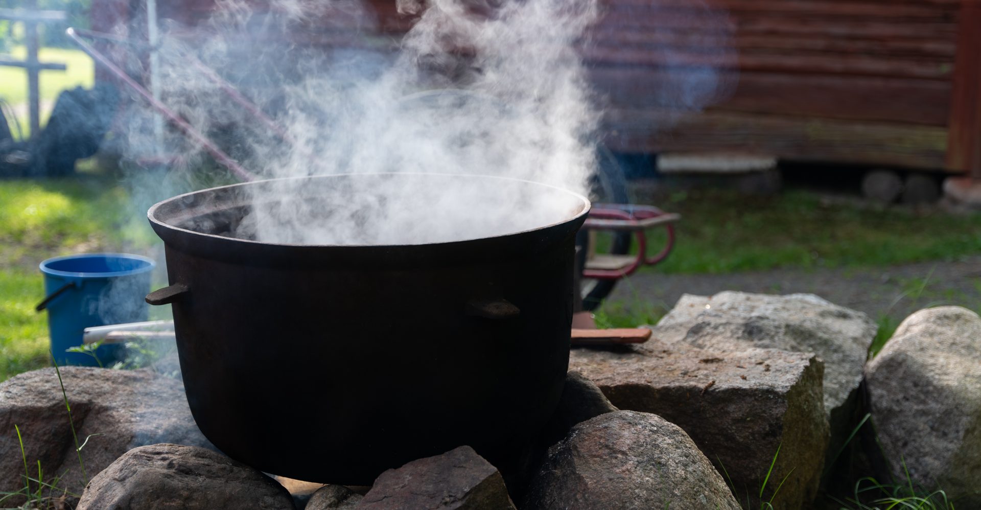 Lähdimme jo heti klo 8:30 kohti Turkansaarta, jossa maalin keitto tapahtuisi. Oli kaunis, lämmin kesäinen päivä, muutamaa sadepisaraa lukuun ottamatta. Kuvatessa myös hyttyset pitivät meidät valppaina, ja käytimme melkein koko purkin hyttysmyrkkyä.