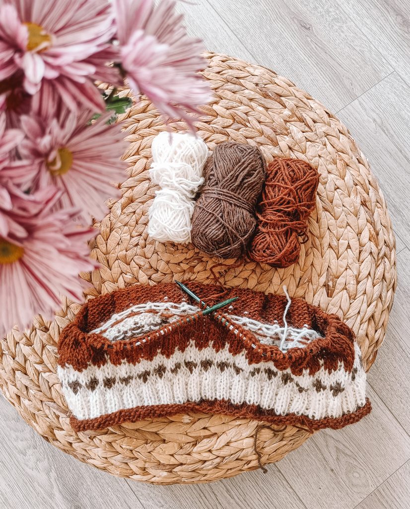 Itse aloitin neulomisen vuonna 2018, ensimmäistä lasta odottaessani. Halusin pukea vauvalle itse tekemiä vaatteita joten tartuin ensimmäistä kertaa puikkoihin sitten ala-asteen. Opastusta sain siskoltani ja kirjastosta lainaamista neulonta kirjoista. Harrastus vei nopeasti täysin mukanaan, neulominen auttoi rentoutumaan ja vähensi stressiä. Itse tehdyn käsityön lopputuloksen näkeminen ja päälle pukeminen tuottaa ylpeyttä ja saavutuksen tunnetta.