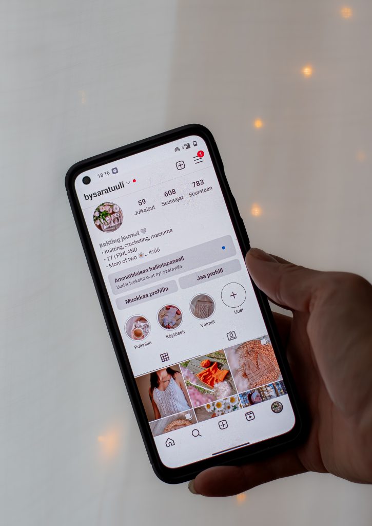 Instagramissa pidän neuletöilleni omaa tiliä johon jaan kuvia keskeneräisistä sekä valmiista töistä, seuraan paljon myös muiden neuletilejä joista saan itselle inspiraatiota. Tulevaisuudessa toiveissa olisi suunnitella omia neuleohjeita sekä tehdä pienimuotoisesti neuleita tilauksesta.