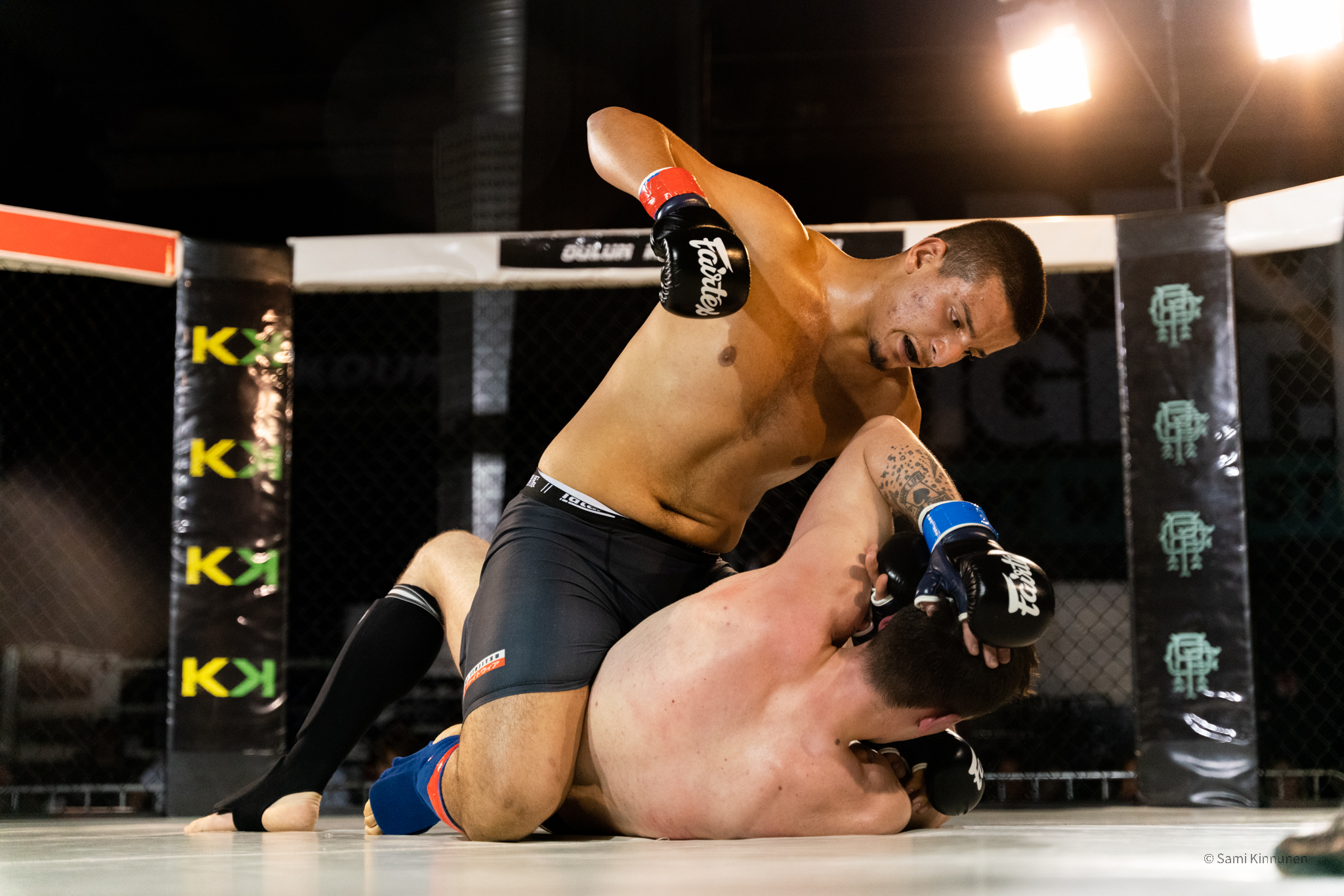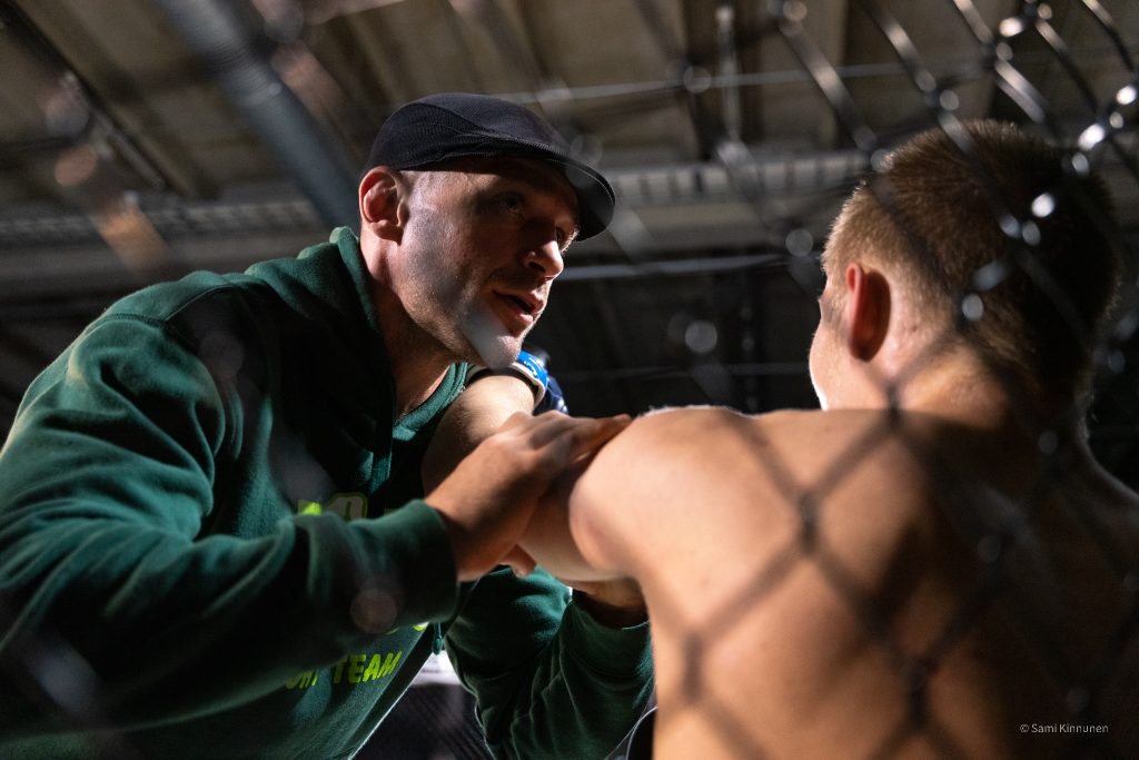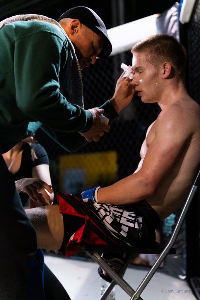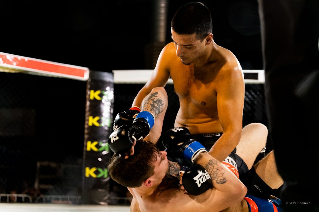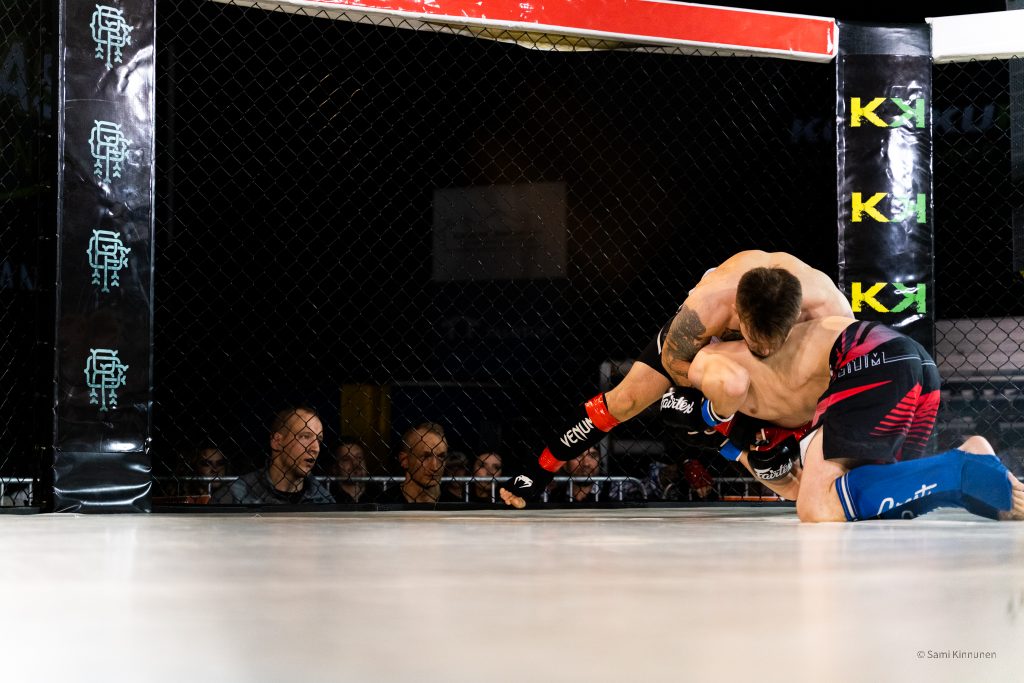 Art of fight 12 otteluilta oli lähenemässä Oulun Kamppailuklubilla, joten laitoin viestiä eräälle tutulle kamppailuklubin valmentajalle ja kysyin saisinko tulla kuvaamaan materiaalia kyseiseen iltaan, ja se sopi hänelle. Urheilukuvauksen vaihtoehtona vapaaottelu sopi minulle mainiosti, sillä en ollut aikaisemmin päässyt kuvaamaan vapaaottelua. lllat ovat kuitenkin minulle tuttuja, koska olen itse ollut useasti katsomossa ja pari kertaa häkin sisäpuolellakin.