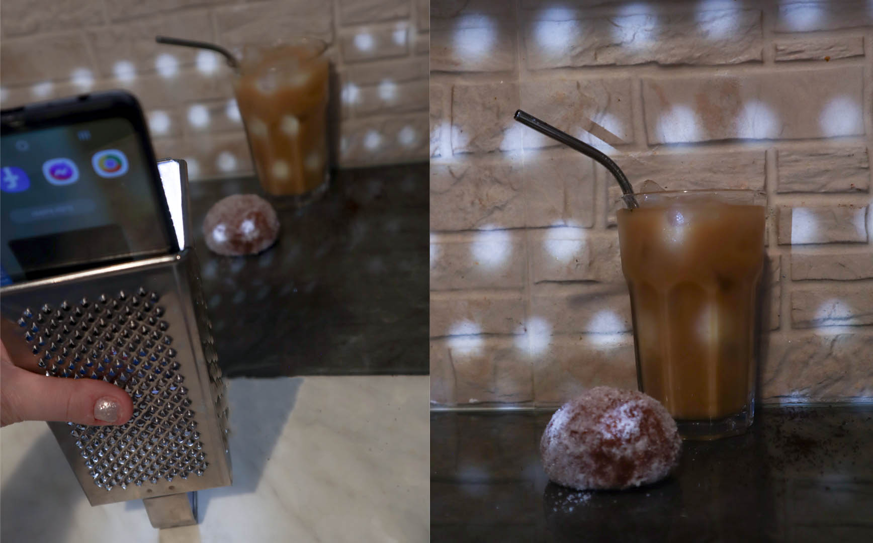 Kahvin osalta suosittelen tehdä koeharjoituksen ilman kuvaamista, jotta tulee käsitys miten olisi miellyttävin tapa kaataa se lasiin.