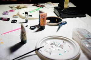 Tapahtumassa oli erilaisia pisteitä mm. meikkaus- ja hiustenlaittopiste. Glitterit ja hiukset kuntoon niin festarilook oli taattu.