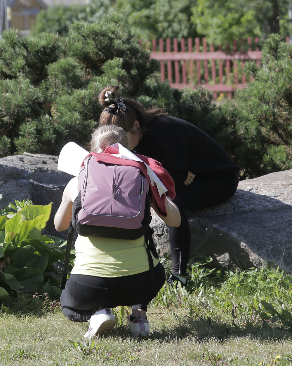 Toisella rastilla vaadittiin edemmän heittäytymistä, oli kuusiosaisen sarjakuvatehtävän aika. Ryhmällä ei mennyt sormi suuhun tässäkään kohtaa vaan ryhmäläiset alkoivat heti improvisoimaan ja ideoimaan tarinaa. Välillä poseerattiin kivien päällä ja välillä fillaria vasten. Puhelimet napsivat kuvia eri kuvakulmista. Myös kuvatekstit tuntuivat syntyvän kivuttomasti ryhmässä rupatellen ja nauraen. Hurtilla huumorilla höystetty Aamutouhut-sarjakuva saatiin valmiiksi ja päivän viimeinen vihje kutsui lentämään takaisin kotkanpesään eli koululle. Vielä riitti ryhmällä virtaa ja välimatkaa taitettiin taas rivakkain askelin tai joutuisasti juosten.