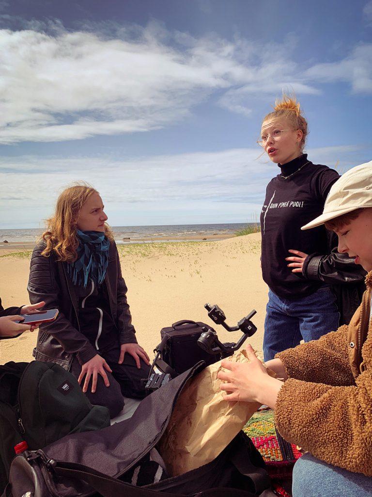 Seuraavan viikon sunnuntaina kuvasimme Hailuodossa rannalla, mutta alunperin siellä piti kuvata lisää muisteluja muun muassa lautalla ja pellolla. Halusimme videon Oulun musiikkivideofestivaaleille, joten videon piti olla valmis sunnuntain jälkeisenä tiistaina.